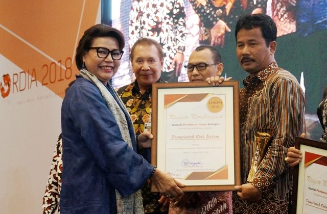 Walikota Batam, Muhammad Rudi saat menerima penghargaan LHKPN dari KPK