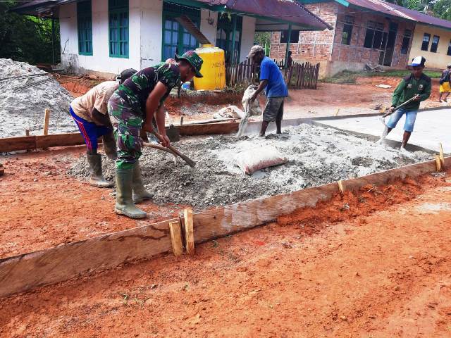 Sejauh ini pembangunan jalan masih terus berjalan walaupun dengan kondisi cuaca yang sangat ekstrim. Dalam pengerjaan tersebut, warga bersama anggota TNI ini menggunakan alat-alat tradisional, walau demikian, mereka tetap bersemangat dalam menyelesaikan pengecoran tersebut.