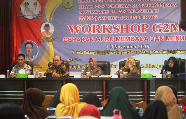 Tanjungpinang, Gk.com – Dinas Pendidikan Kota Tanjungpinang bekerjasama dengan Kelompok Kerja Kepala Sekolah (K3S) SD dan Musyawarah Kerja Kepala Sekolah (MKKS) SMP Kota Tanjungpinang menggelar Workshop selama 3 Hari, dengan tema “Gerakan Guru Membaca dan Menulis (G2M2)”.