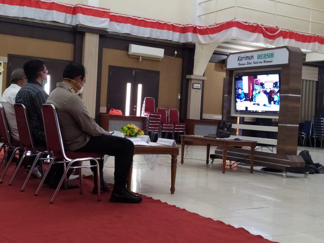 Dalam Video Converence tersebut, turut juga dihadiri oleh Bupati Karimun, Wakil Bupati Karimun Anwar Hasyim, Kapolres Karimun, Kajari Tanjung Balai Karimun, Dandim 0317 TBK, Danlanal Karimun, Sekretaris Daerah dan Kadis Kesehatan Kabupaten Karimun.