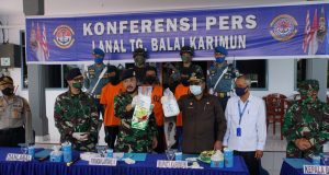 Karimun, GK.com – Tim Fleet One Quick Response (F1QR) Pangkalan TNI Angkatan Laut Tanjung Balai Karimun (Lanal TBK) berhasil menggagalkan penyelundupan Narkotika jenis sabu-sabu seberat 2 Kg di Perairan Karimun Anak Tanjung Balai Karimun, Senin (8/6). Komandan Pangkalan Utama TNI Angkatan Laut (Danlantamal) IV Kolonel Laut (P) Indarto Budiarto, S.E., M.Han., saat memberikan Keterangan Pers … Lanjutkan membaca 2 Kantong Narkotika Dalam Kemasan Teh Cina Ditemukan Tim F1QR di Perairan Karimun