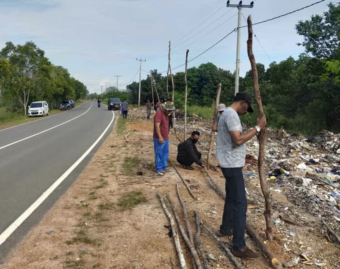 “Kami melakukan pemagaran ini agar tidak ada yang membuang sampah sembarangan di pinggir jalan, khususnya di Jalan Aisyah Sulaiman ini,” ucap Heri melalui pesan, Whatsapp, Sabtu (18/7) sekitar pukul 13.00 Wib.