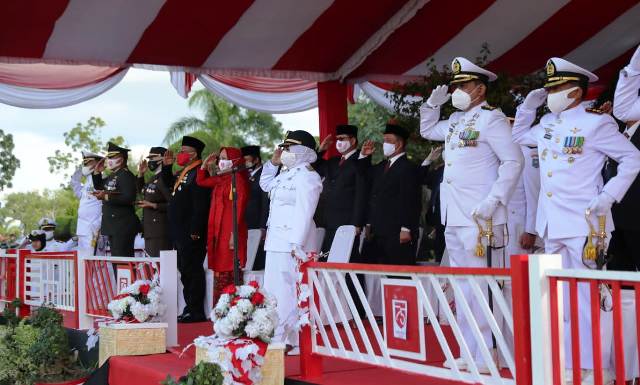 Usai mengikuti upacara di lapangan, Rahma beserta FKPD dan pimpinan OPD mengikuti upacara detik-detik secara virtual langsung dari Istana Negara dengan Inspektur Upacara, Presiden RI, Joko Widodo.