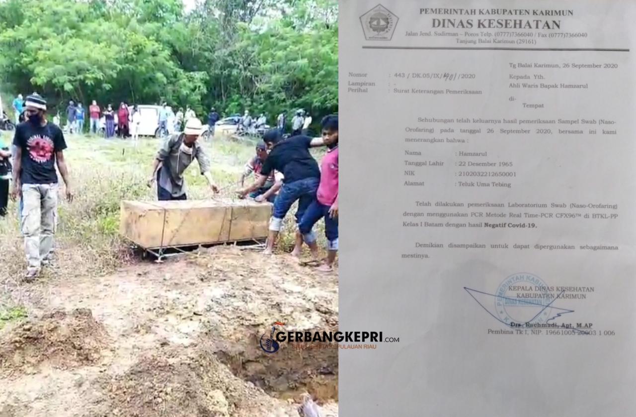 Sementara itu, Kepala Dinas Kesehatan Kabupaten Karimun, Rachmadi saat dimintai keterangan oleh Media ini mengatakan, pemindahan makam memang sesuai permintaan keluarga, karena hasil swab pasien tersebut juga Negatif Covid-19.