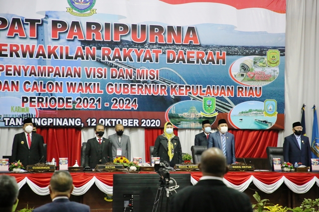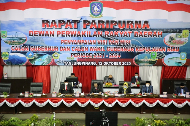 Dompak, GK.com – Dewan Perwakilan Rakyat Daerah (DPRD) Provinsi Kepri menggelar Sidang Paripurna beragendakan “Penyampaian Visi dan Misi calon Gubernur dan Wakil Gubernur Kepulauan Riau Periode 2021-2024”, Senin (12/10) pagi.