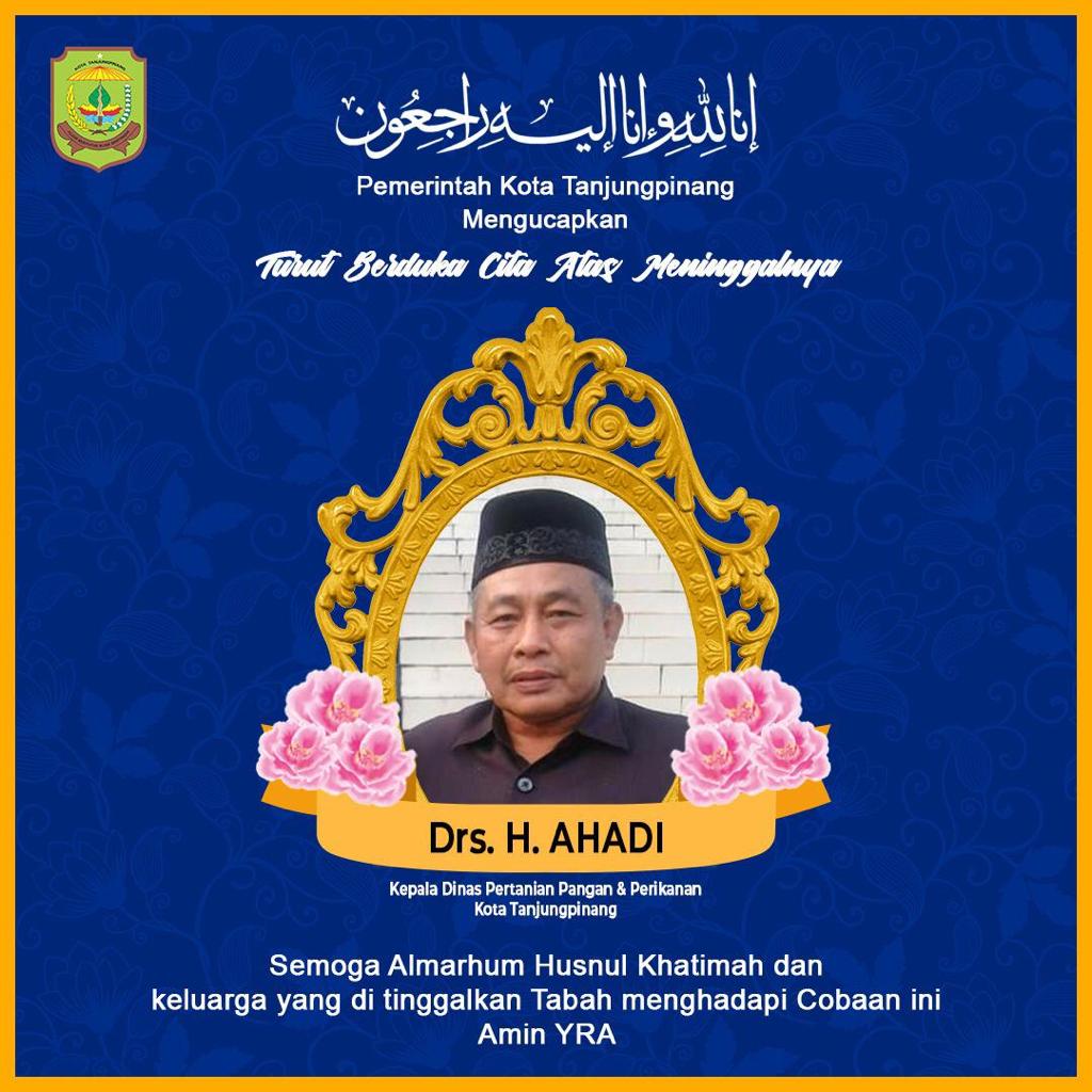 Tanjungpinang, GK.com – Kabar duka menyelimuti Pemerintah Kota Tanjungpinang, Kepala Dinas Pertanian, Pangan, dan Perikanan Kota Tanjungpinang Drs. H. Ahadi tutup usia pada Jumat (29/1) sekitar pukul 15.01 Wib, di Rumah Sakit Umum Daerah Kota Tanjungpinang.