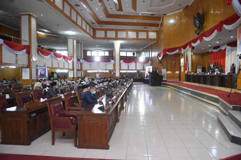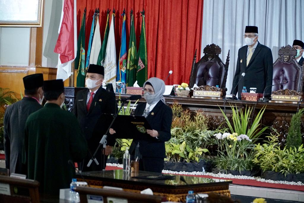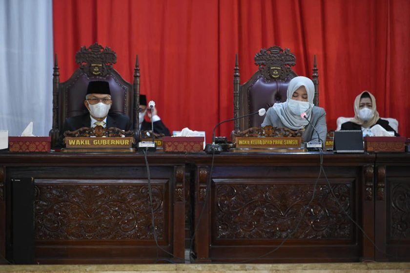 Palembang, GK.com – Wakil Gubernur Sumsel, H. Mawardi Yahya hadiri Rapat Paripurna DPRD Sumsel dalam rangka mendengarkan Penyampaian Laporan Hasil Pembahasan dan Penelitian Pansus-Pansus DPRD Provinsi Sumsel terhadap LKPj Gubernur Sumsel Tahun 2020, di Ruang Paripurna DPRD Sumsel, Senin (26/4).
