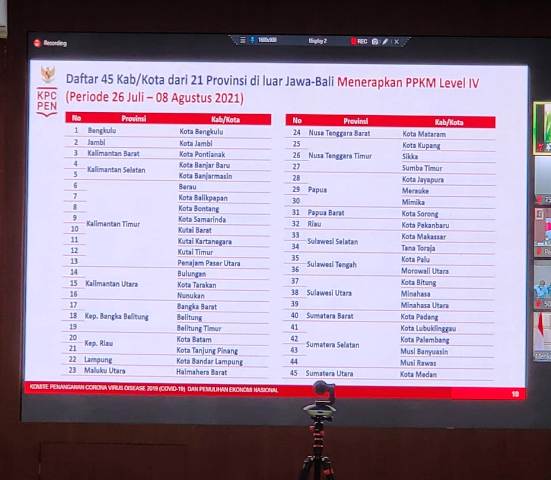 Hal tersebut berdasarkan Surat Edaran (SE) Pemerintah Pusat dalam memperpanjang penerapan PPKM Level 4 untuk 45 Kabupaten/Kota di luar pulau Jawa-Bali mulai tanggal 26 Juli sampai pada 08 Agustus 2021.