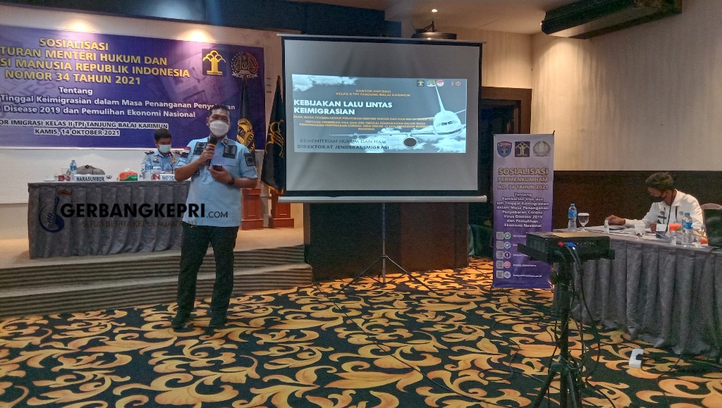 Hal tersebut disampaikan Kantor Imigrasi Kelas II TPI Tanjung Balai Karimun saat menggelar sosialisasi Peraturan Mentri Hukum dan Hak Asasi Manusia Republik Indonesia Nomor 34 Tahun 2021 Tentang Pemberian Visa dan Izin Tinggal Keimigrasian Dalam Masa Penanganan Penyebaran Covid-19 dan Pemulihan Ekonomi Nasional (PEN), Kamis (14/10/2021) di Hotel Aston Karimun sekitar pukul 10.30 Wib.