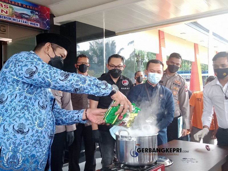 Karimun, GK.Com – Kepala Badan Narkotika Nasional Kabupaten (BNNK) Karimun, Eryan Novianri, S.S.H menghadiri rangkaian pemusnahan Barang Bukti (BB) Narkotika jenis Sabu hasil tangkapan Satresnarkoba Polres Karimun di Mapolres Karimun, Senin (01/11/2021) sekitar pukul 14.05 Wib.