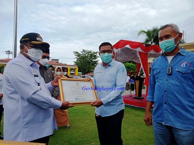Salah satu Piagam penghargaan tersebut di berikan kepada PT Saipem Indonesia Karimun Yard atas partisipasinya dalam kegiatan pengendalian dan vaksinasi Covid-19 di Kabupaten Karimun.