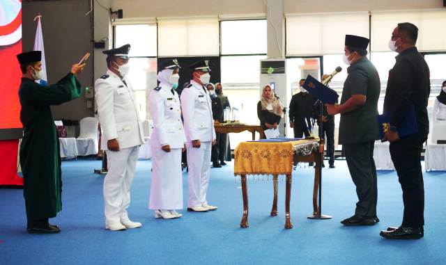 Bintan, GK.com – Tiga Kepala Desa terpilih pada Pilkada Serentak yang diselenggarakan beberapa waktu lalu, dilantik Plt Bupati Bintan, Roby Kurniawan, Kamis (23/12/2021) siang, di Aula Kantor Bupati, Bintan Buyu.