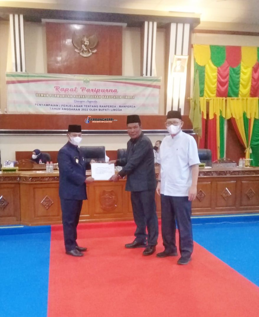 Lingga, GK.com – Beragendakan Penyampaian / Penjelasan Rancangan Peraturan Daerah (Ranperda) Tahun Anggaran 2022 oleh Bupati Lingga yang dilaksanakan di Ruang Rapat DPRD Kabupaten Lingga, Rapat Paripurna dilaksanakan pada Senin (14/02/2022) dan di pimpin oleh Wakil Ketua 1 DPRD Kabupaten Lingga, Aziz Martindas. Sementara kehadiran Bupati Lingga diwakili oleh Wakilnya, Neko Wesha Pawelloy.