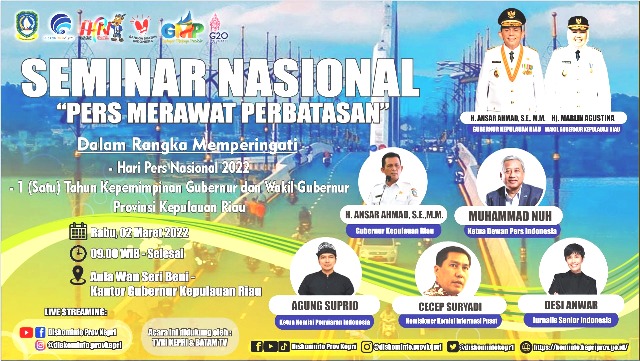 Seminar ini dilaksanakan dalam rangka peringatan Hari Pers Nasional (HPN) 2022, sekaligus satu tahun kepemimpinan Gubernur dan Wakil Gubernur Kepri, H Ansar Ahmad SE,MM dan Hj Marlin Agustina, dimulai dari Pukul 09.00 Wib sampai dengan selesai di Aula Wan Seri Beni, Kantor Gubernur Kepulauan Riau, Pulau Dompak, Tanjungpinang.