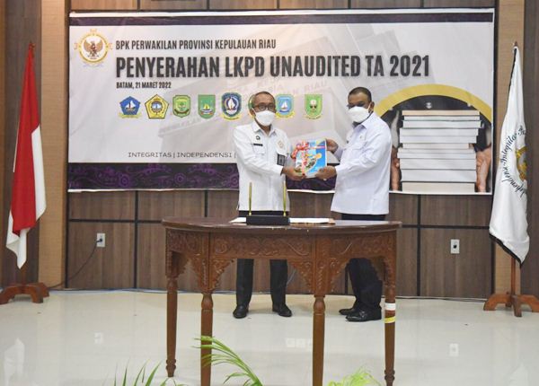 Dalam penyerahan LKPD pada Senin (21/03/2022) itu diserahkan langsung oleh Bupati Karimun, Dr H Aunur Rafiq,S.Sos M.Si.
