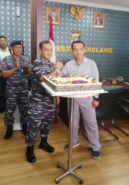 Sambil membawa Kue Tart bertuliskan HUT Bhayangkara ke- 76, dengan diiringi nyanyian selamat ulang tahun, kedatangan rombongan Danlanal tersebut dalam rangka memberikan kejutan dan surprise kepada keluarga besar Polri.