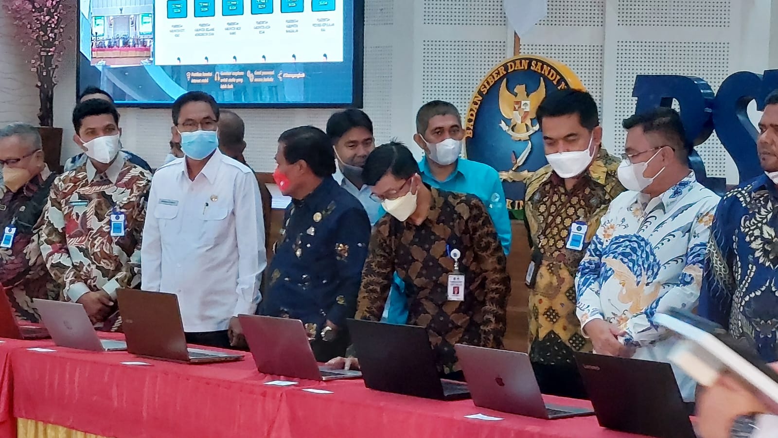 Penandatanganan MoU dengan BSSN RI dilaksanakan sebanyak 20 Pemprov, Kabupaten dan Kota lainnya se- Indonesia. Seluruh Pemda dinilai telah menyelesaikan semua perangkat sertifikasi elektronik di masing-masing Daerahnya. (Ist).