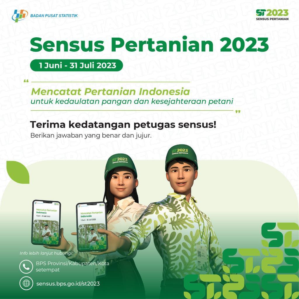 (Terima kedatangan petugas sensus di rumah Anda pada tanggal 01 Juni s/d 31 Juli 2023. Mari bersama mencatat Pertanian Indonesia untuk Kedaulatan Pangan dan Kesejahteraan Petani,” pintanya.