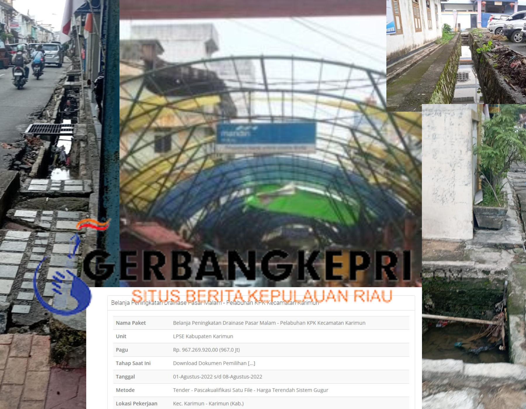 Karimun, GK.com – Proyek Normalisasi Drainase kawasan Pasar Malam, Pelabuhan KPK yang terletak persis di Ibu Kota Kabupaten Karimun, Provinsi Kepulauan Riau yang menelan biaya sebesar Rp 950.000.000,- di tahun 2022 menuai banyak pertanyaan dari masyarakat dan media.