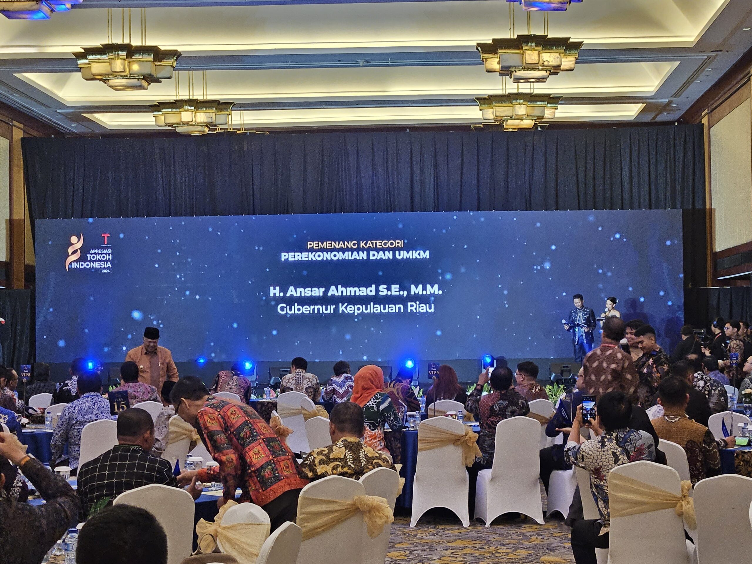 Kepri, GK,com – Gubernur Kepulauan Riau, H. Ansar Ahmad, menerima penghargaan nasional atas upayanya dalam memberdayakan UMKM di Kepri. Dalam acara Malam Apresiasi Tokoh Indonesia Tahun 2024 yang diselenggarakan oleh Tempo Media Group di Hotel Borobudur, Jakarta, pada Selasa (10/9) malam, Gubernur Ansar menerima penghargaan untuk kategori Perekonomian dan UMKM. Penghargaan tersebut diterima oleh Kepala Dinas Komunikasi dan Informatika Provinsi Kepri, Hasan, yang hadir mewakili Gubernur Ansar.