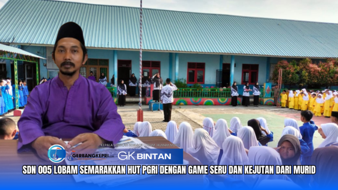 Bintan, GK.com – Suasana meriah menyelimuti SDN 005 Lobam dalam perayaan Hari Guru Nasional (HGN) dan HUT Persatuan Guru Republik Indonesia (PGRI) ke-79. Berbagai kegiatan menarik digelar, mulai dari upacara bendera, pembacaan puisi, hingga lomba seru yang diikuti para guru.