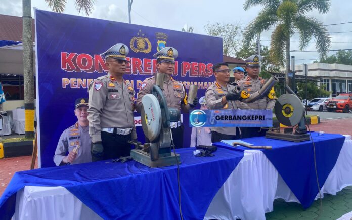 Tanjungpinang, GK.com — Maraknya penggunaan knalpot brong yang mengganggu ketertiban dan kenyamanan masyarakat menjadi perhatian serius aparat kepolisian. Menindaklanjuti keluhan warga, sekaligus menekan aksi balap liar, Polresta Tanjungpinang terus melakukan penertiban secara berkelanjutan. Hasilnya, ratusan knalpot brong berhasil diamankan dan dimusnahkan sebagai bentuk komitmen menciptakan situasi lalu lintas yang aman, tertib, dan kondusif.