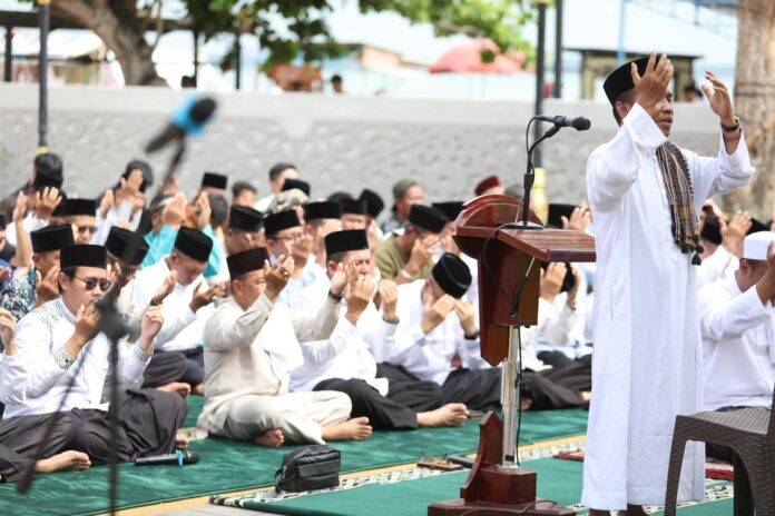 Bertindak sebagai imam, Ustadz Muhammad Salim, sementara khutbah disampaikan oleh Ustadz Rustam Efendi. Turut hadir pada momen itu, Gubernur Kepulauan Riau H. Ansar Ahmad. (RD)